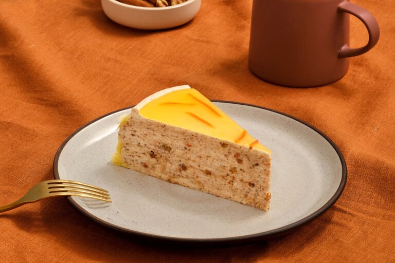 A beloved classic reimagined with Lady M's signature touch. Delicate handmade crêpes are layered with silky cream infused with cinnamon, ginger, and nutmeg—interlaced with tender carrot cake crumble rich with walnuts and raisins. Crowned with vibrant orange jelly and candied carrots, this sophisticated creation elevates a timeless favorite.