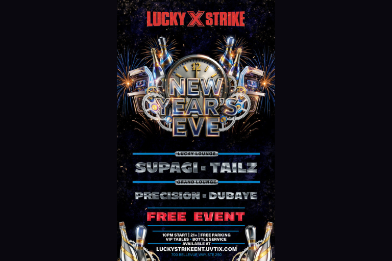 Lucky Strike Bellevue will host a 21-and-over New Year’s Eve party beginning at 10 p.m. on Dec. 31, featuring DJs, bowling lanes, dancing and party favors, with a countdown to midnight. Tickets include parking, with VIP packages available.