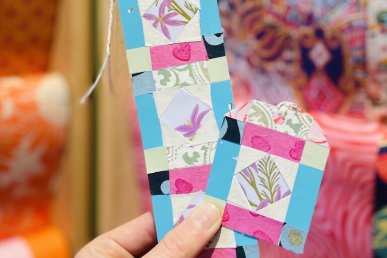 Starting on Wednesday the 18th you can stop by the store to make a free patchwork tag or bookmark!