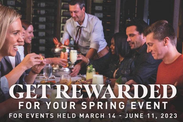 Host an event that is rewarding - for you and your guests. Book an event for 15+ guests by May 7, 2023, and receive a $50.00 dining card for the host, and a $25.00 dining card for each guest!