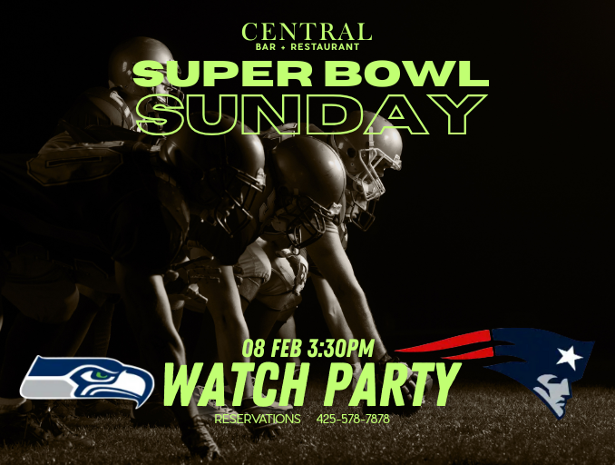 Central will be playing the Super Bowl live with sound, from 8 TVs.