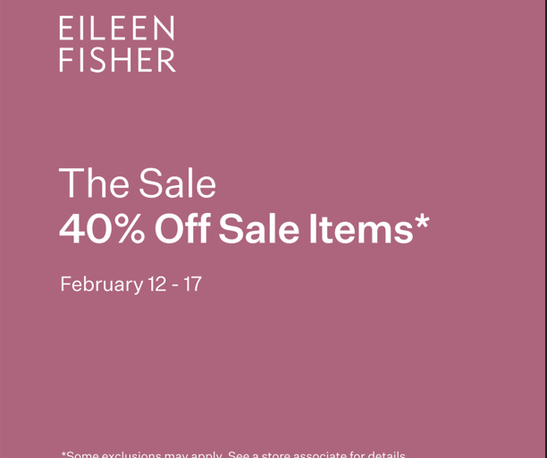 Visit us from February 12-17 and enjoy 40% off sale items.*