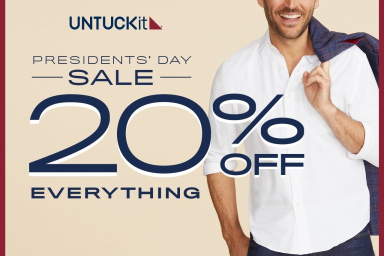 Visit UNTUCKit from February 18-21, 2022 to save 20% off everything storewide during their President's Day Sale.
